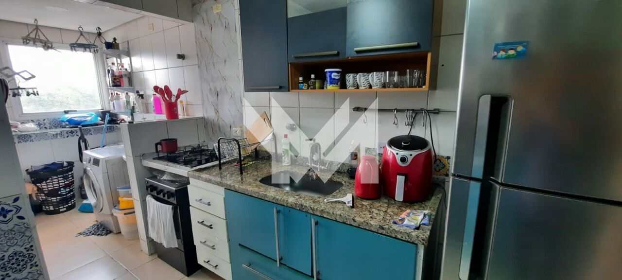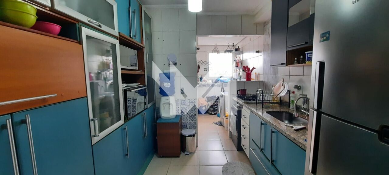 Apartamento com 3 dormitórios, 2 banheiros, sala, cozinha, lavanderia, varanda estendida com vidros e estacionamento.